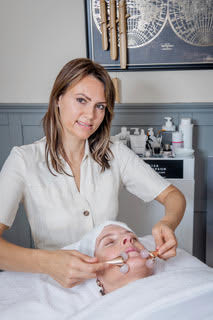 Louise performing the love and light facial on a client.